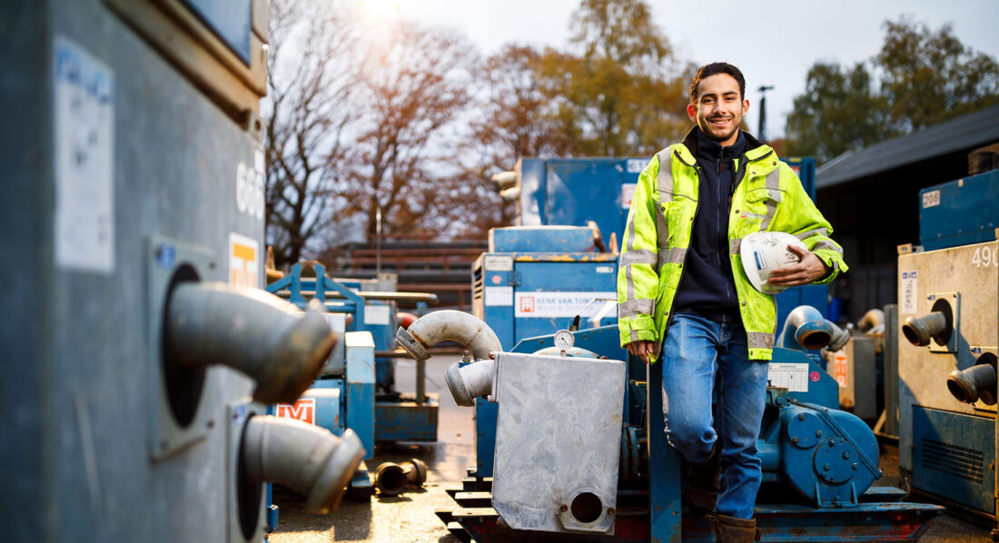 “De kneepjes van het vak leren. Ik kijk mee met projecten, leid projecten in goede banen, help met het opzetten van een plan. Als de opdrachtbevestiging van onze calculator bij Han (uitvoeder) en mij binnenkomt, kijken wij wat er nodig is en hoe we het gaan opzetten. We schouwen we locatie, maken afspraken, plannen een datum in voor het inmaken en regelen de afstemming en communicatie met de klant en andere partijen. Als onderaannemer krijgen we namelijk te maken met veel verschillende partijen. Denk aan klanten, collega’s, andere uitvoerders en omwonenden. Daarnaast stemmen we de bemaling zo goed mogelijk af en lossen we problemen en storingen op. Als het project klaar is, doe ik ook de aflevering met de klant.”